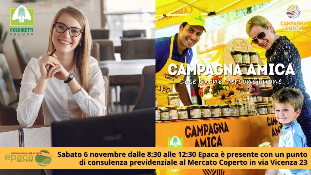Ricevere aggiornamenti sulla riforma delle pensioni, oppure sui bonus per le famiglie o sulle malattie professionali, ottenere informazioni di carattere previdenziale, il tutto mentre si fa la spesa a km zero. Sarà possibile sabato prossimo, 6 novembre, al Mercato Coperto di Campagna Amica Padova in via Vicenza 23. Dalle 8.30 alle 12.30 il patronato Epaca Coldiretti Padova aprirà lo sportello di consulenza gratuita in materia previdenziale. Un’ottima occasione per saperne di più sul futuro delle pensioni per lavoratori dipendenti pubblici e privati, autonomi e professionisti, ma anche per avere informazioni sulle forme di sostegno e aiuto ai lavoratori, ai pensionati, agli studenti e alle famiglie in genere. Sarà anche possibile approfondire gli aspetti riguardati le malattie professionali, spesso sconosciuti anche a chi avrebbe diritto a qualche forma di indennizzo.