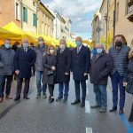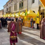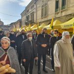 Centinaia di agricoltori padovani hanno raggiunto Cittadella, domenica 28 novembre, per la settantunesima Giornata Provinciale del Ringraziamento. La città murata era stata scelta già per l’edizione del 2020 ma la pandemia ha imposto il rinvio dell’evento in presenza. Voluta da Coldiretti con la Conferenza Episcopale Italiana, la Giornata del Ringraziamento segna da sempre la fine dell’annata agraria ed è l’occasione per gli imprenditori per ritrovarsi dopo lunghi mesi di lavoro. Cittadella ha accolto gli agricoltori colorata di giallo, come già era stato per l’edizione del 2009. Ad aprire la giornata il mercato di Campagna Amica in centro storico, con le tipicità del territorio e di stagione proposte da un nutrito gruppo di agricoltori che da anni animano i mercati agricoli, fra cui quello di Cittadella, uno dei primi a partire e uno dei più frequentati della provincia. Dalle mura cittadine il corteo ha raggiunto piazza Pierobon accompagnato dalle note della banda “Ciro Bianchi”.