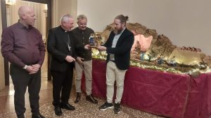 Il Vescovo ha subito posto la speciale statuina nel presepio allestito in Vescovado, accanto ai personaggi degli anni scorsi: “Ne è nato un presepio particolare e carico di significati – sottolinea mons. Cipolla – in questa occasione tocca i temi dell’inclusione, della collaborazione e della sicurezza. In questa rappresentazione si vedono anche i risultati del lavoro, in particolare del lavoro ben fatto. Al di là dell’aspetto economico c’è una soddisfazione interiore per il risultato ottenuto con impegno e fatica. Importante la sottolineatura alla collaborazione e all’accoglienza, nel reciproco rispetto”.