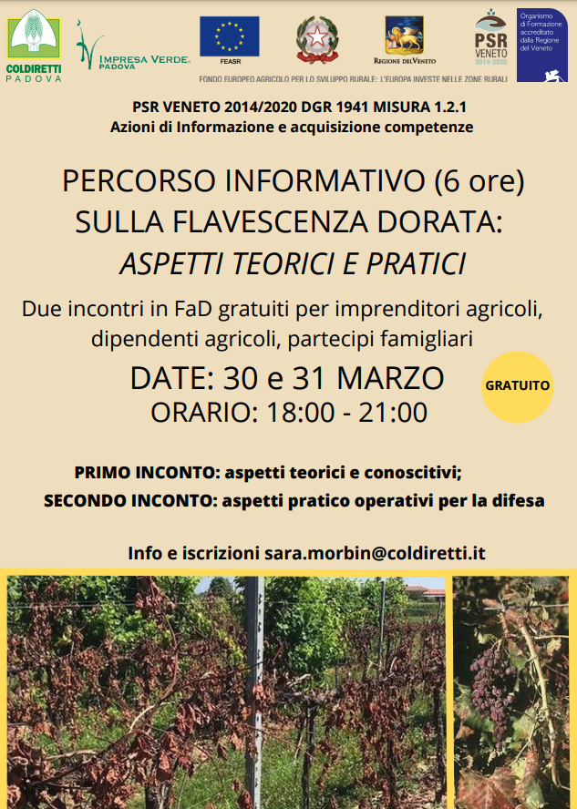 La prossima settimana, il 30 e 31 marzo, si svolgerà il secondo ciclo del seminario sulla flavescenza dorata, per il quale le iscrizioni si chiuderanno lunedì 28 marzo ore 13.