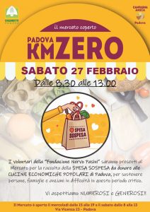 Prodotti agricoli a “km zero” in dono alle Cucine Popolari di Padova grazie alla generosità dei clienti del Mercato Coperto di Campagna Amica Padova. Sabato 27 febbraio, per tutta la mattinata, torna l’iniziativa della “spesa sospesa” nel mercato agricolo in via Vicenza 23. Ai clienti verrà proposto di acquistare alimenti da lasciare per la “spesa sospesa” a favore delle Cucine Economiche Popolari di Padova. Gli agricoltori padovani faranno la loro parte mettendo a disposizione prodotti di qualità e del territorio, freschi e di stagione. Saranno ospiti anche i volontari della Fondazione Nervo Pasini, che gestisce per l’appunto le Cucine Popolari di Padova, per presentare il nuovo ricettario firmato da grandi chef veneti a sostegno dell’attività caritatevole.